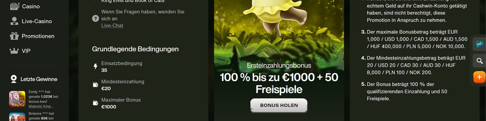 100% Bonus bis zu 1000 € Bonusguthaben + 50 FSCashwin im Test - Jetzt top aktuell 2025 - Eggertspiele.de