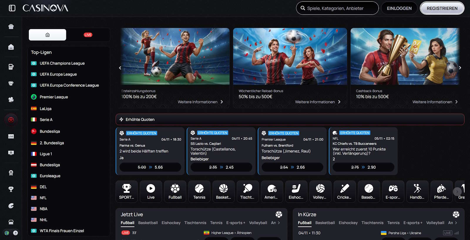 Erhalten Sie alle aktuellen Infos zum Casinova Casino – Bonus, Spielauswahl, Zahlungen und mehr