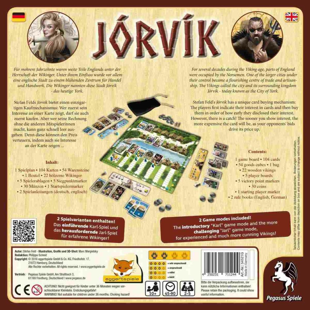 Bei Jórvík handelt es sich um eine neu gestaltete und überarbeitete Version von Autor Stefan Felds Die Speicherstadt, inklusive der Kaispeicher-Erweiterung – mit Wikinger-Thema. Wer gerne Kennerspiele spielt, kennt sicher auch schon das Eggertspiel mit dem Titel „Die Speicherstadt“ aus dem Jahr 2010. Es gilt mitunter als eines der erfolgreichsten Brettspiele aus der Eggertspiele-Reihe. Die Spielerweiterung ist bei Jorvik im Spielumfang enthalten und optional einsetzbar. Sie bietet allen, die es etwas komplexer mögen, zusätzlichen Spielspaß.
