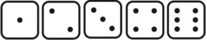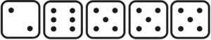 Beim Knobeln braucht man 5 Würfel mit jeweils sechs Seiten. Jeder Würfel sollte die Augenzahlen 1 bis 6 aufweisen.