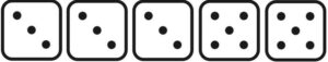 - fünf Würfel mit jeweils sechs Seiten