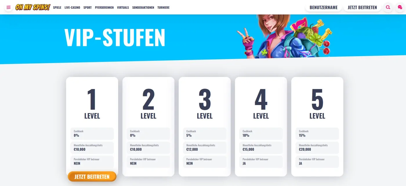 Treue Spieler erhalten bei Ohmyspins die Möglichkeit am VIP Programm teilzunehmen. Als ‚Very Important Person‘ erhaltet ihr nach einem aufsteigenden Punktesystem interessante, exklusive Angebote und genießt einige Privilegien. VIPs genießen höhere Auszahlungslimits und Auszahlungen erfolgen dann in rasant kurzer Zeit. Zudem erhaltet ihr in regelmäßigen Abständen besondere Prämienangebote für noch mehr Spielspaß. VIP sein kann sich also durchaus lohnen.