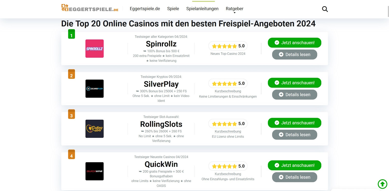 Die Top 20 Online Casinos mit den besten Freispiel-Angeboten 2025