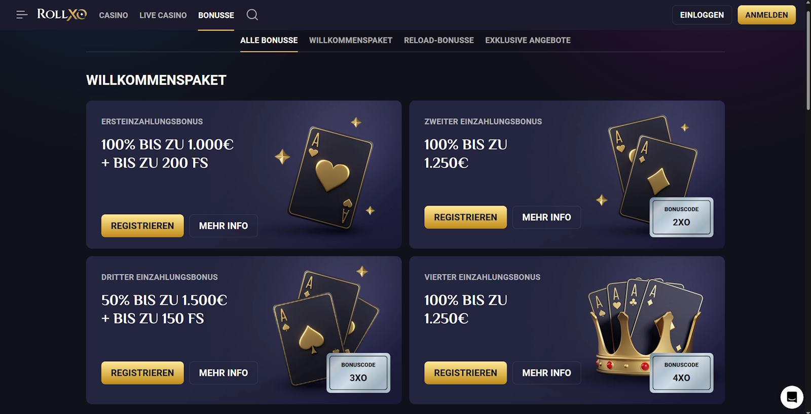 Bis 5000 € Bonus + 350 FreispieleRollXO Casino - Jetzt als Review 2025 bei Eggertspiele.de
