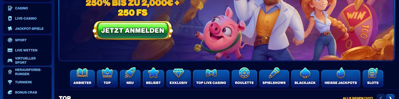 + 250 Freispiele & Bonus Crab ★ die neuesten Spiele ★ keine Limits, mit Bonus Crab