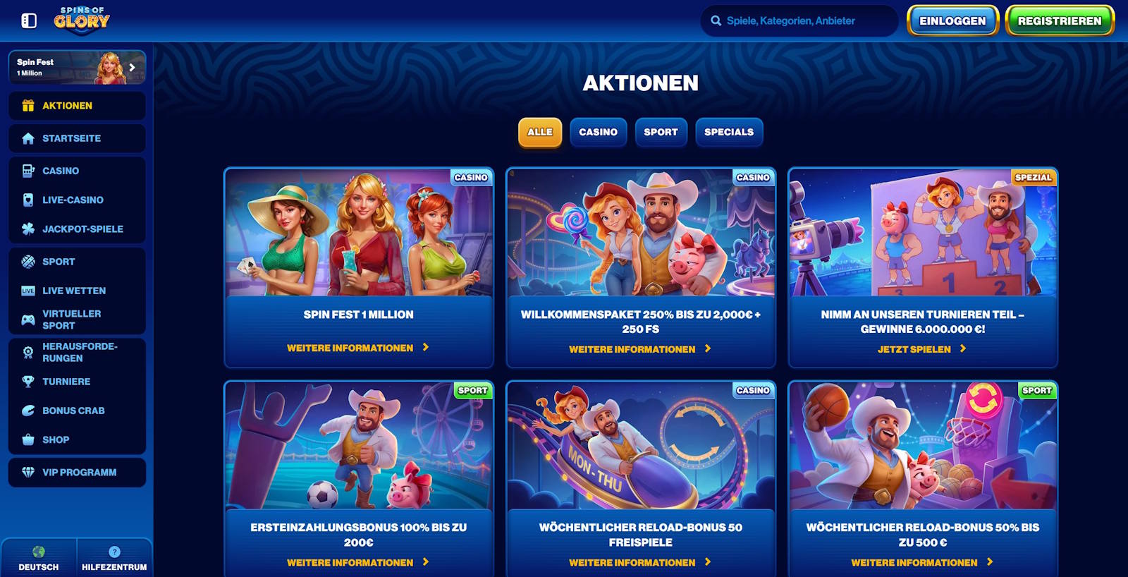 Die neuesten SpieltitelSpinsOfGlory Casino - Jetzt 200 Freispiele & Bonusguthaben