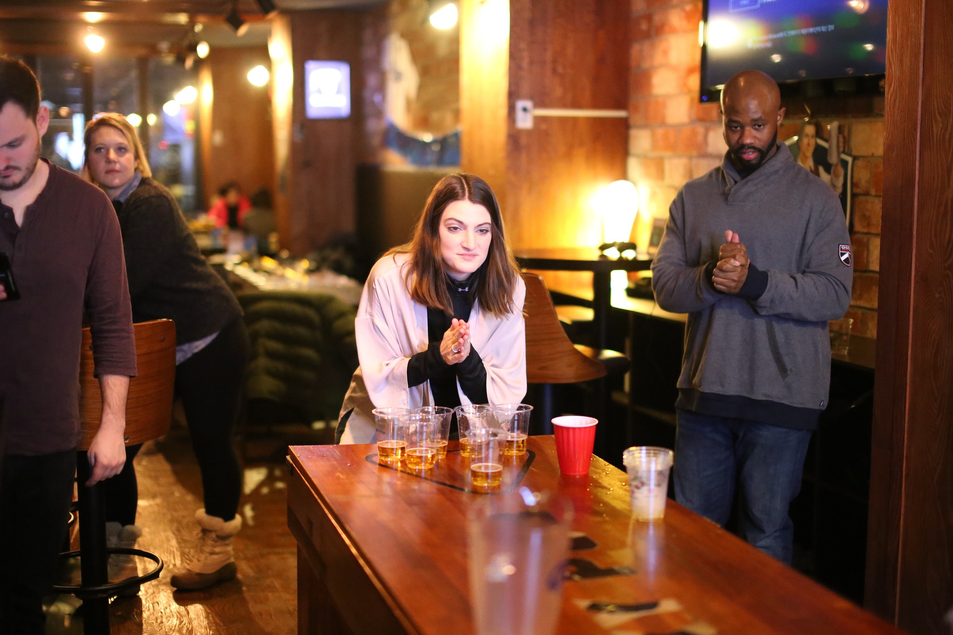 Beer Pong: Ein Geschicklichkeitsspiel, bei dem Tischtennisbälle in Becher geworfen werden.