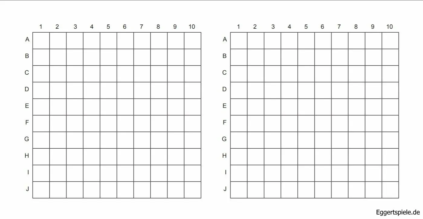 - Zwei quadratische Raster (Gitternetz) pro Spieler, üblicherweise 10×10 Felder groß.